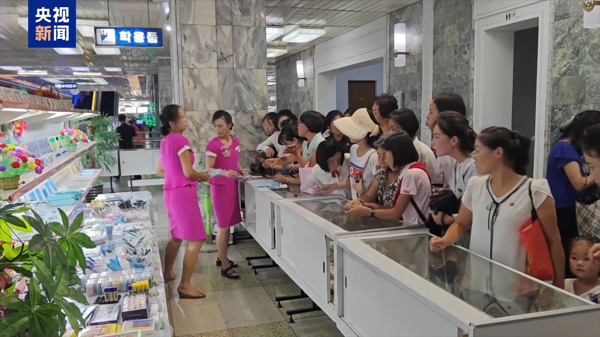 平壤各大商场内人流络绎不绝,许多民众在琳琅满目的货架前选购商品。