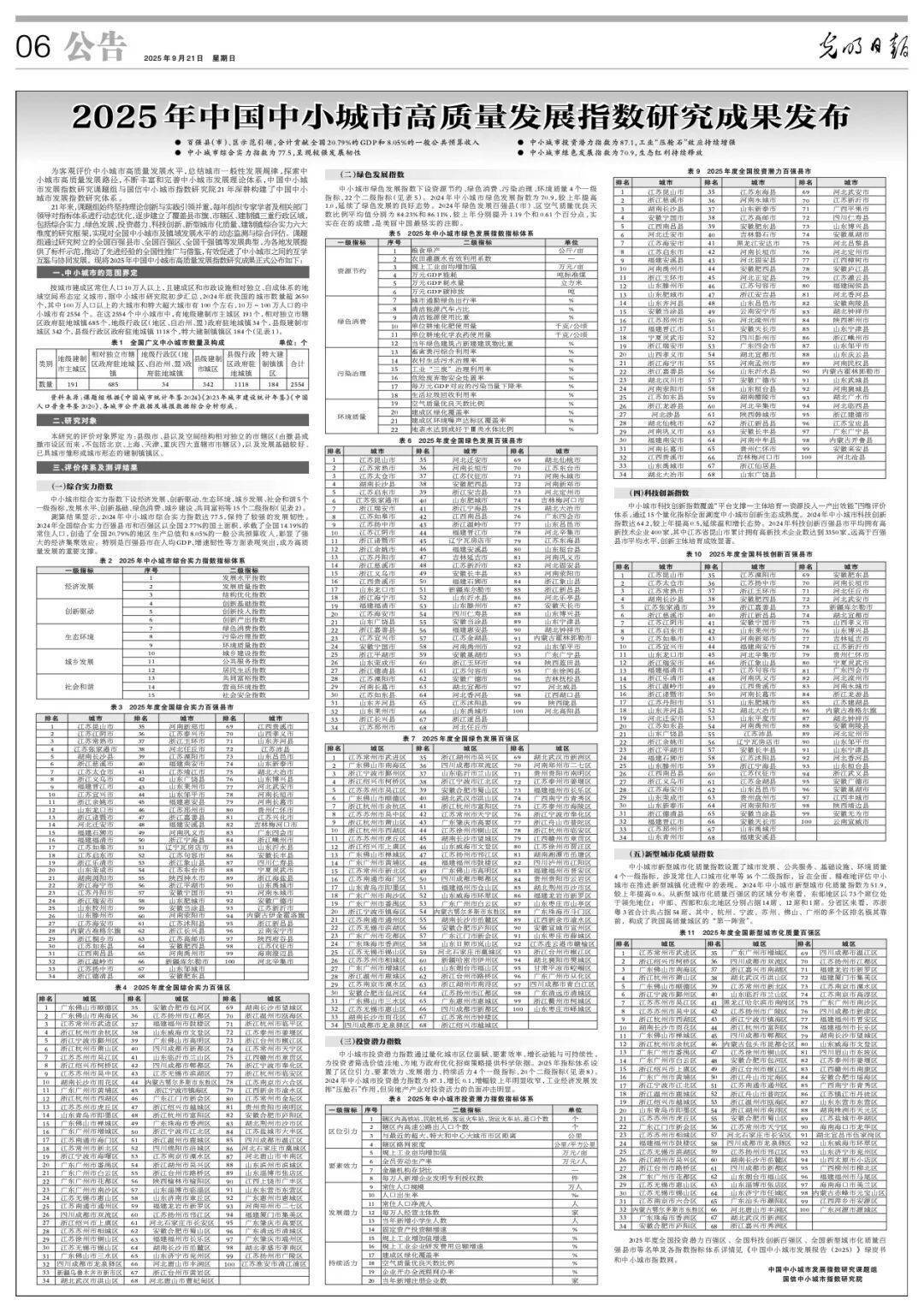 近日,2025年中国中小城市高质量发展指数研究成果正式发布。