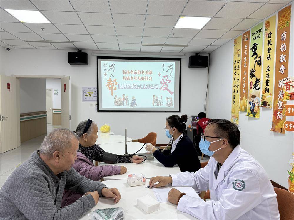 活动现场。李静姝摄在重阳节来临之际,为大力弘扬中华民族尊老敬老的传统美德,10月17日上午,唐山市路北区民政局联合钓鱼台街道南楼社区在社区幸福家园居家养老服务中心举办了“弘扬孝亲敬老美德 共建老年友好社会”重阳节志愿服务活动。