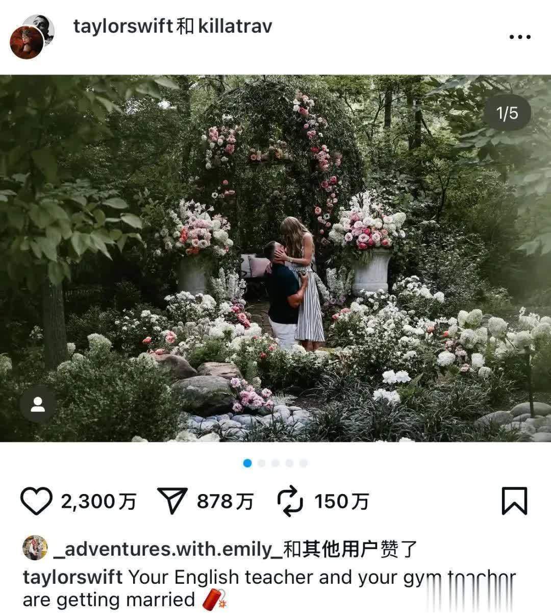当地时间8月26日,霉霉(Talyor Swift)和特拉维斯·凯尔斯(Travis Kelce)在Ins上宣布订婚,相关消息引发网络热议。